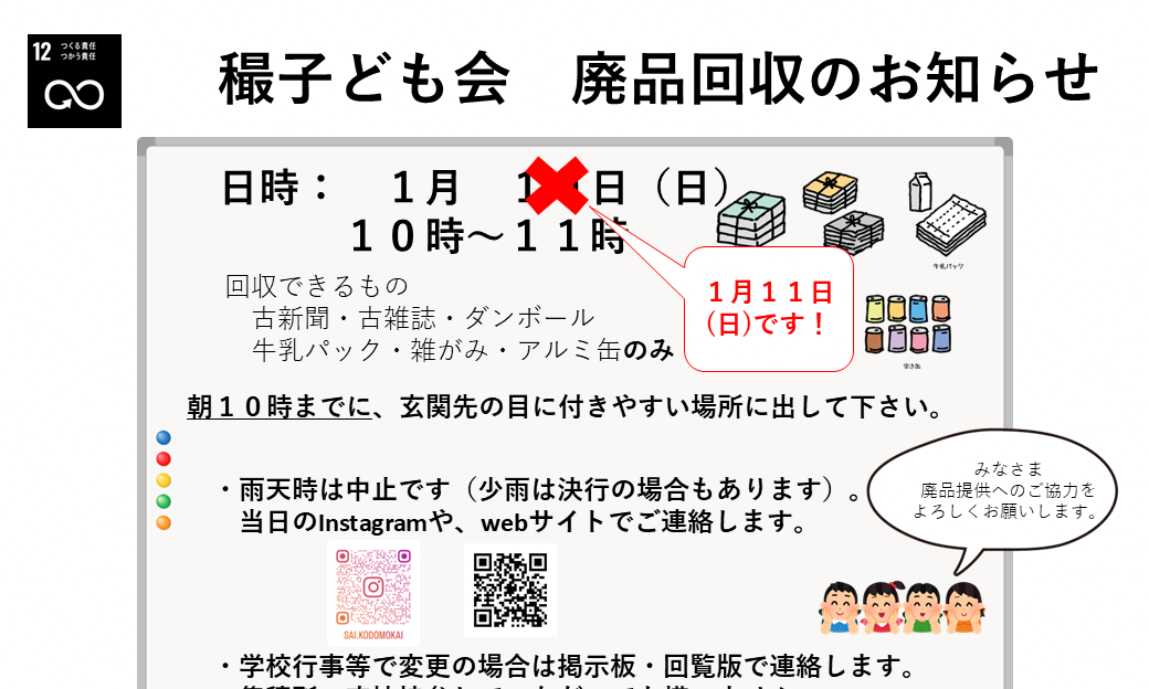 2026年1月 廃品回収のご連絡(日付間違いの案内)